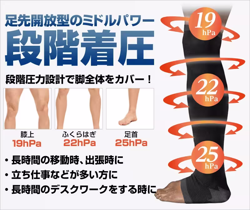 着圧ソックス男性用は就寝時に使用することで 翌朝に今まで感じた事のないスッキリを感じられます! 着圧に慣れるまでは寝る前に2、3時間程着用して 慣れてきたら就寝時にご利用下さい。