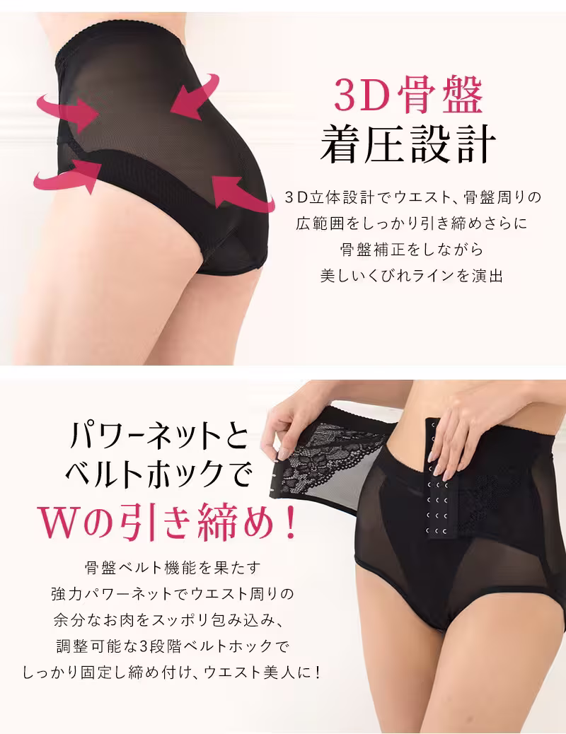 ぽっこりお腹も産後のお腹のたるみも3段階8連ホックパワーネットでくびれ美人に ガードル機能ショーツ 下腹 ぽっこり 骨盤引き締め ハイウエスト細魅せショーツ